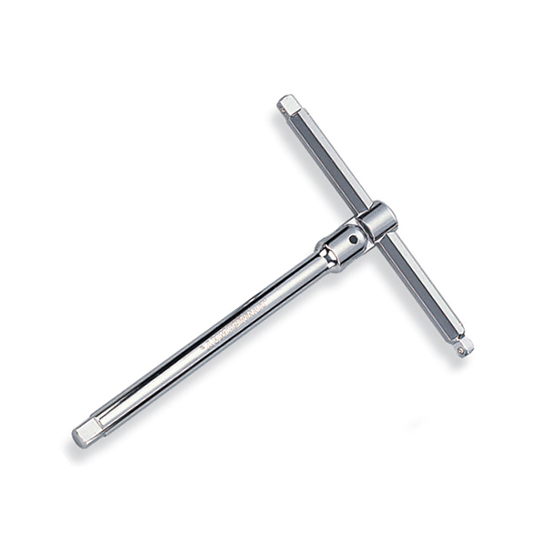 Универсальный инструмент, использующийся в качестве Т- или Г-образного воротка с удлинителем, при этом позволяющий производить операции с насадками 1/4 DR, 3/8 DR и 1/2 DR без каких либо адаптеров. Изготовлен из хромонадиевой стали, имеет зеркальное хромоникелевое покрытие. Размер в Т-образном состоянии 200х250 мм при массе 700 гр.