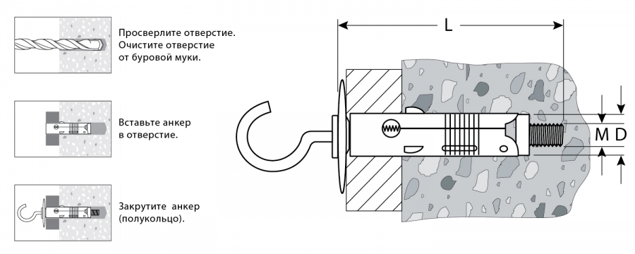 • Мин. усилие вырывания (бетон В25), кгс: 600