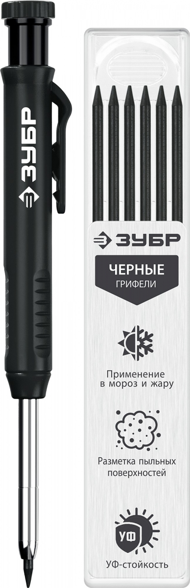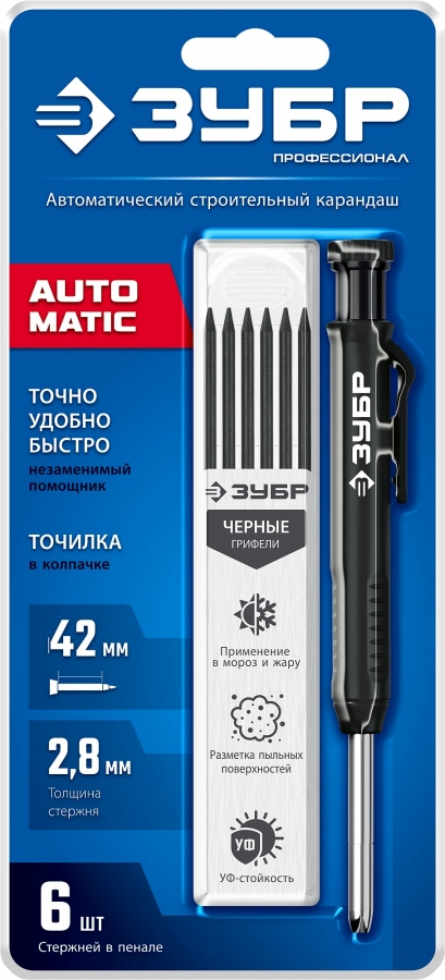 Автоматический строительный карандаш ЗУБР, черный, HB, 6 сменных грифелей, АСК, серия Профессионал 06311-2