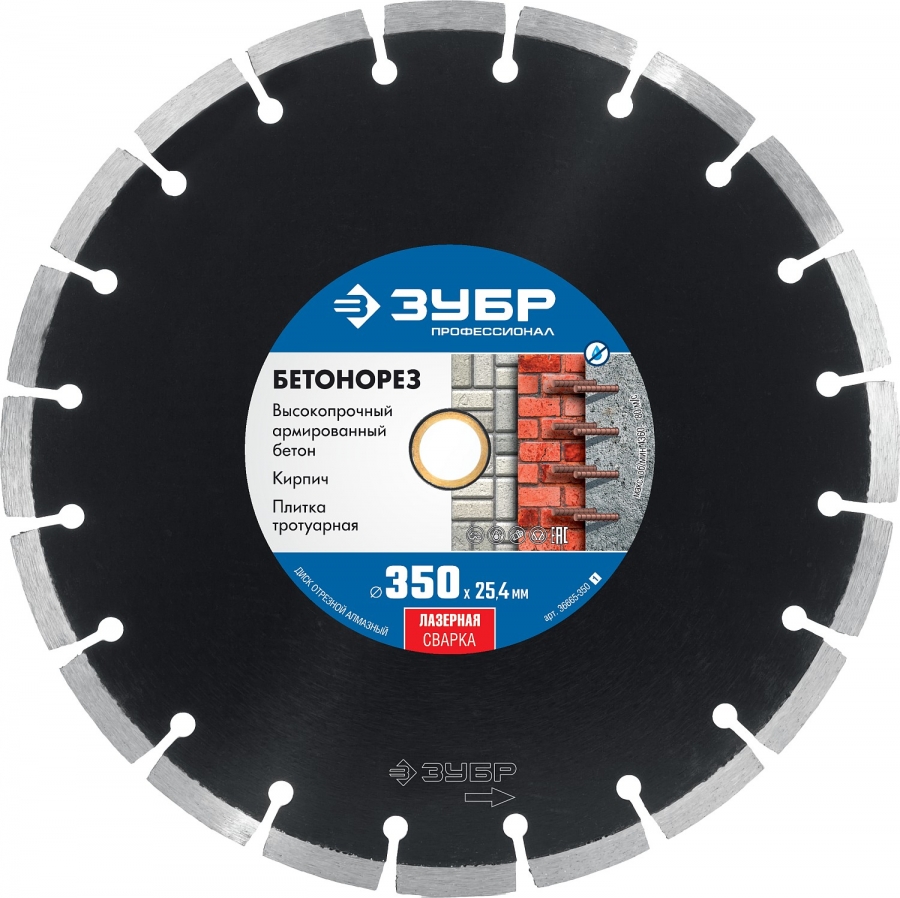 БЕТОНОРЕЗ 350 мм, диск алмазный отрезной по бетону и камню, ЗУБР Профессионал 36665-350_z01