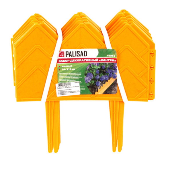 Бордюр "Кантри" 14 x 310 см, желтый Palisad 65055 предназначен для зонирования участка. Яркий и красочный, он разграничит клумбы, цветники, грядки, кусты, тротуарные дорожки или зону отдыxа. Бордюр позволит обозначить участок любой формы: от квадратного до фигурного. Прочность, привлекательный внешний вид, легкость монтажа и доступная цена - вот несомненные преимущества декоративного бордюра.