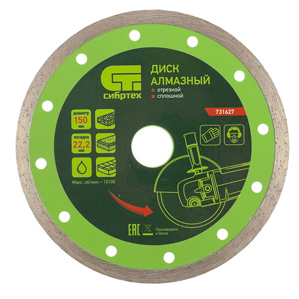 Диск предназначен для мокрого резания, керамической плитки, керамогранита, природного камня.