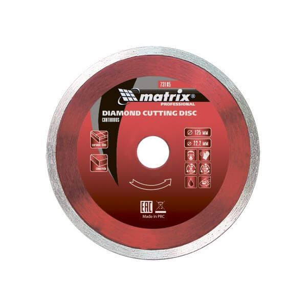 Диск алмазный отрезной сплошной 200 х 22,2 мм Matrix 73189 используется при мокрой резке керамической плитки.