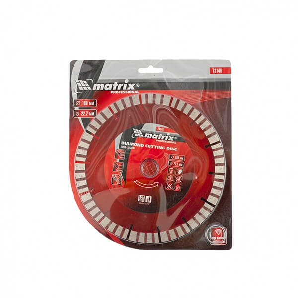 Диск алмазный отрезной Турбо-сегментный 180 х 22,2 мм Matrix 73146 предназначен для сухого резания, бетона различных марок, кирпича, природного камня.