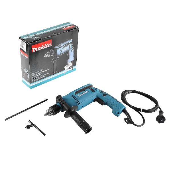 Дрель ударная Makita HP1640 предназначена для сверления с ударом и без. Дрель оснащена функцией реверса, которая позволяет извлечь инструмент при застревании в материале. В зависимости от материала можно выставить нужное число оборотов для более точной работы. Благодаря небольшим габаритам инструмента можно работать одной рукой, что очень важно при проведении потолочных работ.