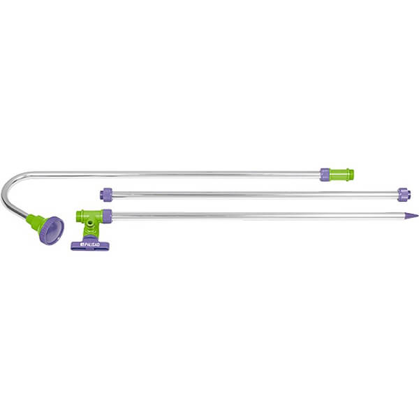 Душ садовый трехсекционный Palisad 67125 изготовлен из алюминиевых трубок, легких и стойких к коррозии. Напор воды регулируется краном.