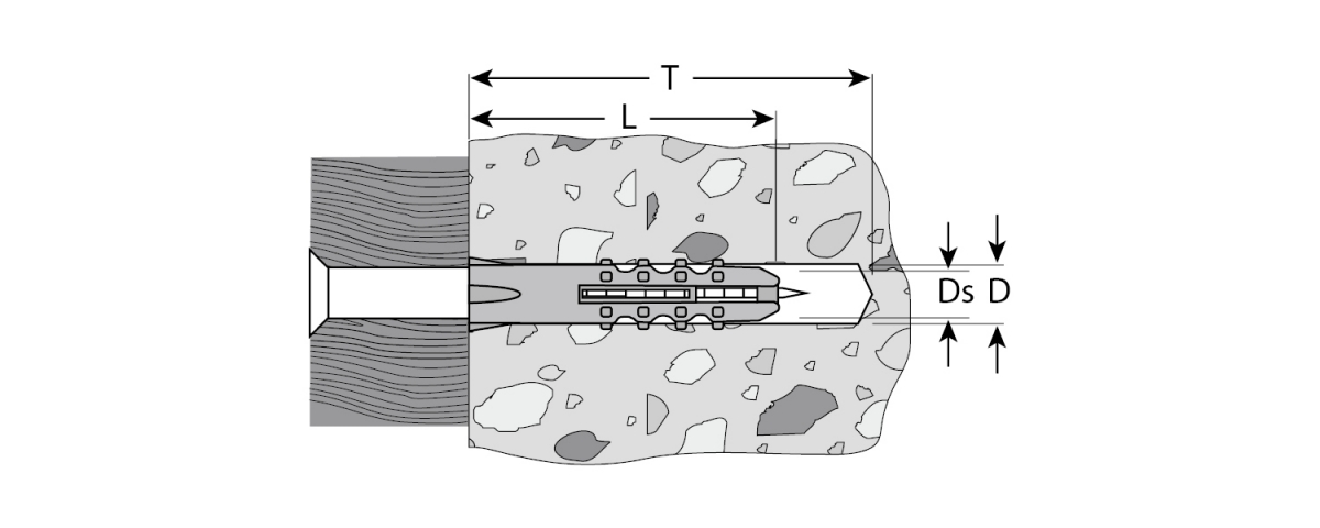 Распорные полипропиленовые дюбели используются для крепления элементов и конструкций к несущему основанию. Находят широкое применение в быту для крепления полок, шкафов, картин, светильников, сантехники и т.п. Распорная часть дюбеля изменяет свою форму при фиксации в материале.