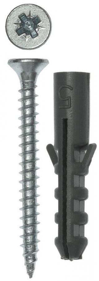 Дюбель распорный полипропиленовый, тип ЕВРО , в комплекте с шурупом, 5 х 25 / 3,0 х 30 мм, 15 шт, ЗУБР 30662-05-25