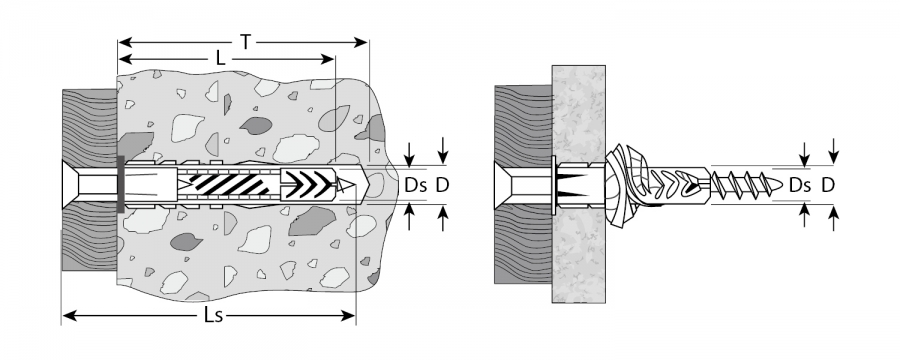 Универсальные дюбели изготовлены из высококачественного полипропилена и используются для крепления различных элементов и конструкций к несущему основанию. Находят широкое применение в быту для крепления полок, шкафов, картин, светильников, сантехники и т.п. Дюбель состоит из нераспорной части и распорной (рабочей) зоны, которая изменяет свои размеры (форму) при закреплении.