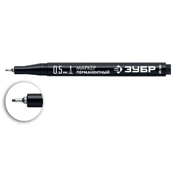 Экстра тонкий перманентный маркер 0,5 мм, черный, МП-50 ЗУБР 06321-2 позволяет делать тонкие надписи и линии на мелких и узких предметах.