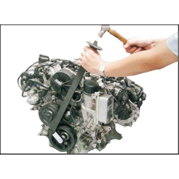 Фиксатор шкива центрального болта JTC JTC-4699 специально предназначен для удерживания шкива от проворачивания при откручивании центрального болта. Крутящий момент: 813,5 Нм. Применяется для шкивов, маховиков, муфт, фланцев и др. Порядок работы: Установите на приспособление головку, соответствующую размеру центрального болта. Установите приспособление на центральный болт шкива коленчатого вала. Легкими ударами молотка по верхней части приспособления начинайте отворачивать центральный болт.