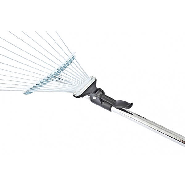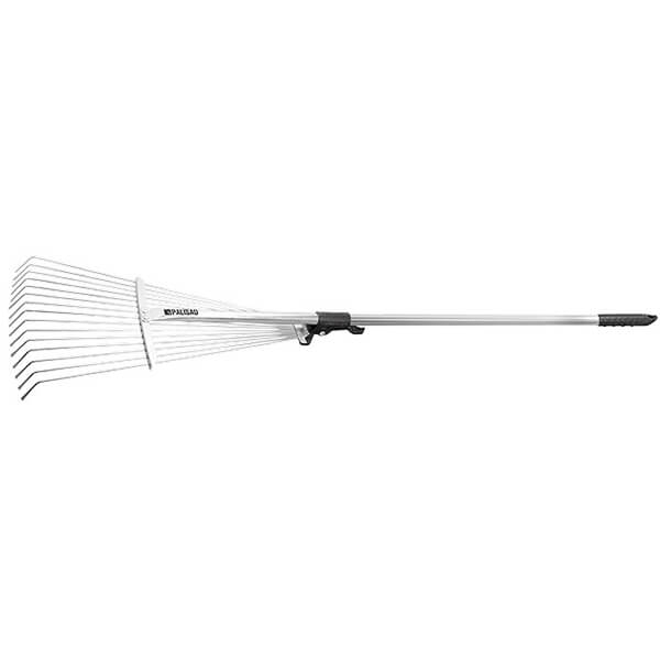 Грабли веерные раздвижные 15-зубые, 1130 мм Palisad 61756 предназначены для сбора опавшей листвы, срезанных веток, сорняков, садового мусора. Грабли веерные регулируемые, 15 круглых, сплющенных на концах зубьев, охват рабочей части от 200 до 440 мм. Алюминиевый черенок длиной 1600 мм с резиновой ручкой на конце. Зубья закреплены на подвижной, скользящей по черенку втулке, которая фиксируется эксцентриковым зажимом в любом необходимом положении, изменяя ширину захвата. Круглые жесткие зубья позволяют также использовать грабли для аэрации почвы. Зубья выполнены из пружинной стали 65Г и имеют повышенную жесткость, что обеспечивает удобство в работе. Оксидирование зубьев защищает от коррозии.