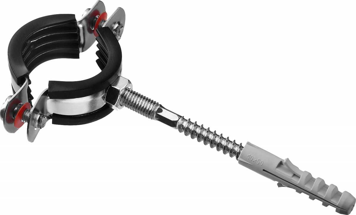 Стальные трубные хомуты способны выдерживать большие нагрузки и обеспечивают надежность крепления труб различного назначения к любым основаниям. Труба прочно фиксируется внутри хомута с помощью метрических винтов. Уплотнитель из высококачественной резины обеспечивает идеальную шумоизоляцию. Ширина ленты хомута составляет 20 мм.