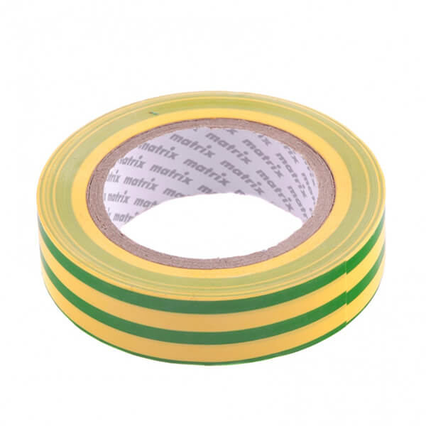 Изолента ПВХ 15 мм х 10 м, желто-зеленая Matrix 88776 предназначена для проведения всех видов электромонтажных работ (электрическая изоляция проводников, защита от механических повреждений, цветовая маркировка).