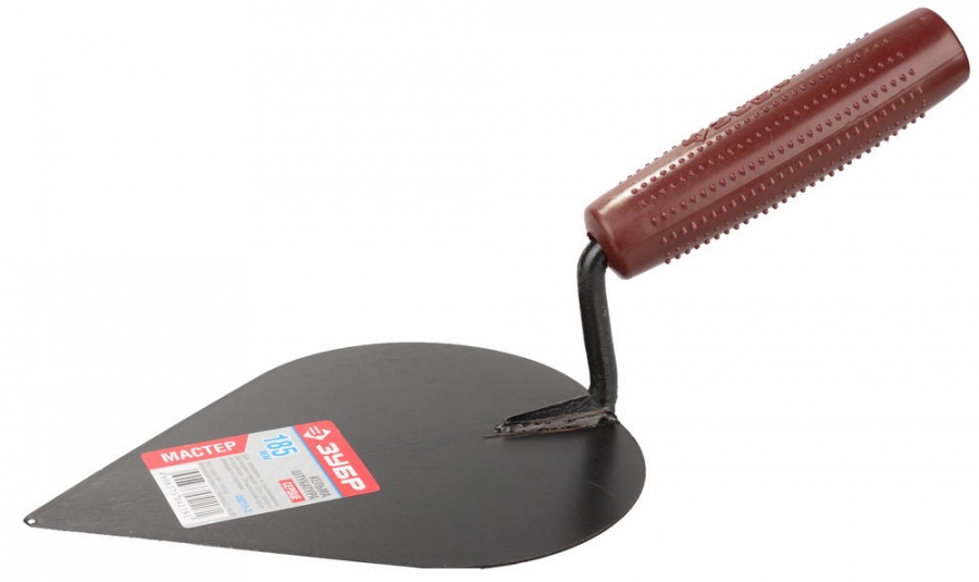 кельма используется для нанесения строительных растворов, стальное полотно обеспечивает прочность конструкции, а пластмассовая ручка удобство в работе