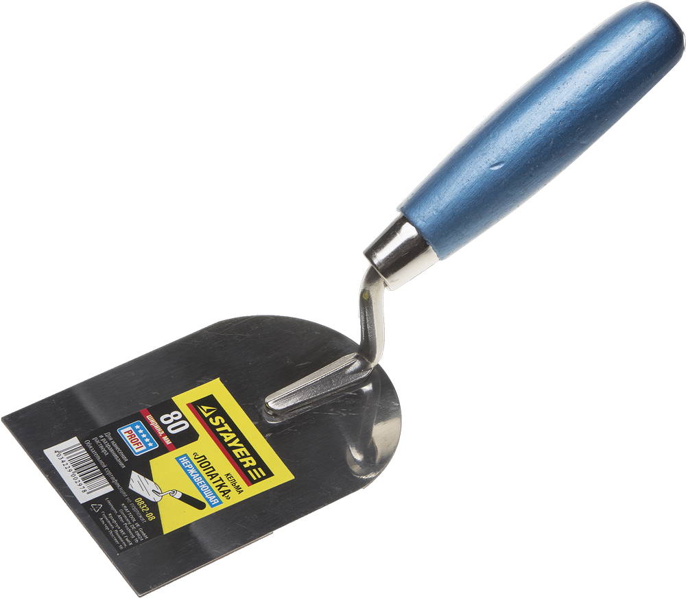 кельма используется для нанесения строительных растворов, нержавеющее стальное полотно обеспечивает прочность конструкции, а двухкомпонентная ручка удобство в работе