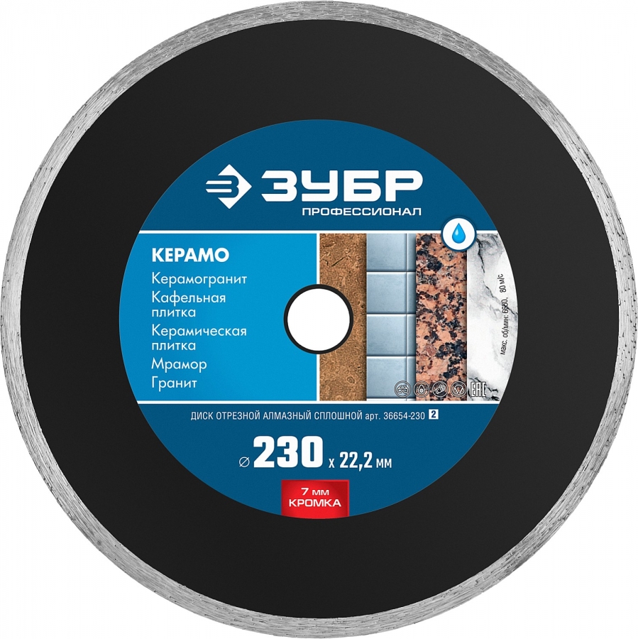 КЕРАМО-22 230 мм, диск алмазный отрезной сплошной по керамограниту, мрамору, плитке, ЗУБР Профессионал 36654-230_z02