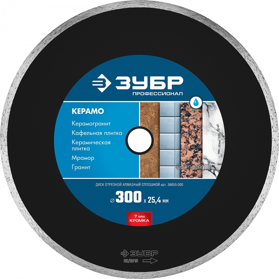КЕРАМО-25 300 мм, диск алмазный отрезной сплошной по керамограниту, мрамору, плитке, ЗУБР Профессионал 36655-300