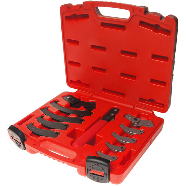 Ключ для круглых гаек с прорезью (с насадками) JTC JTC-4455 позволяет комфортно работать в условиях ограниченного пространства. Диапазон от 3/4" до 6 1/2". В наборе 2 типа насадок: радиусные и со штифтом.