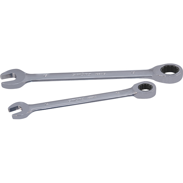 Гаечный ключ с накидной рабочей частью со встроенным храповым механизмом. Поставляется в комбинации с рожковой частью того же размера. Ключ применяется при обслуживании крепежа при свободном его вращении, без экстремальных нагрузок. Малый, 5deg;, обратный ход делает ключ незаменимым в ограниченном рабочем пространстве. Храповой механизм SNAP GEAR, с колесом в 72 зуба, обеспечивает достаточно высокий передаваемый крутящий момент благодаря закаленной особым способом хромованадиевой стали, применяемой при производстве механизма. Ключ изготовлен по стандарту ANSI, имеет трехслойное хромоникелевое покрытие, зеркально отполирован.