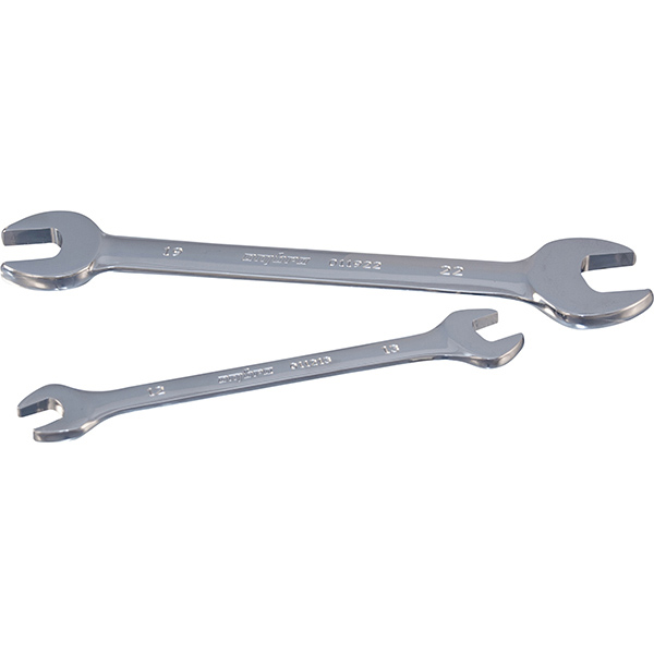 Универсальный ключ для работ с крепежом, имеющим доступ лишь с одной стороны. Рожковые гаечные ключиизготовлены из высоколегированной стали, по стандарту ANSI/ASME B107.6 и соответствует требованиям ГОСТ 2839-80. Чечевичное сечение рукоятки с увеличенной толщиной ребра позволяет развить более высокий крутящий момент по сравнению с ключами двутаврового сечения европейского типа. Устойчивое к механическому воздействию и агрессивным средам зеркальное, трехслойное, хромоникелевое покрытие облегчает удаление загрязнений срожковых ключейпосле работы. Малое количество пятен и площади контакта несколько ограничивает применение ключа с высоконагруженными резьбовыми соединениями.