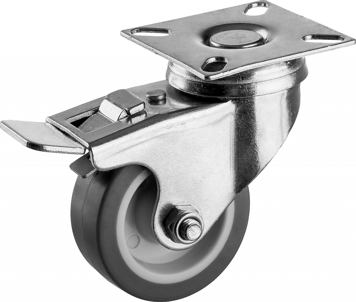 Колесо поворотное с тормозом d=50 мм, г/п 40 кг, термопластич. резина/полипропилен, ЗУБР Профессионал 30946-50-B