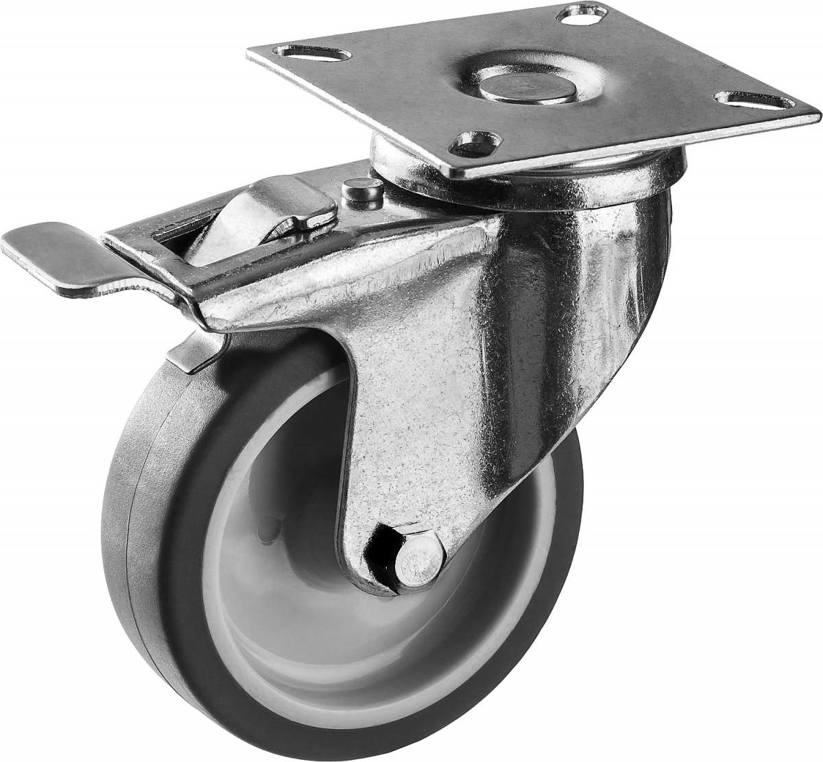 Колесо поворотное с тормозом d=75 мм, г/п 60 кг, термопластич. резина/полипропилен, ЗУБР Профессионал 30946-75-B