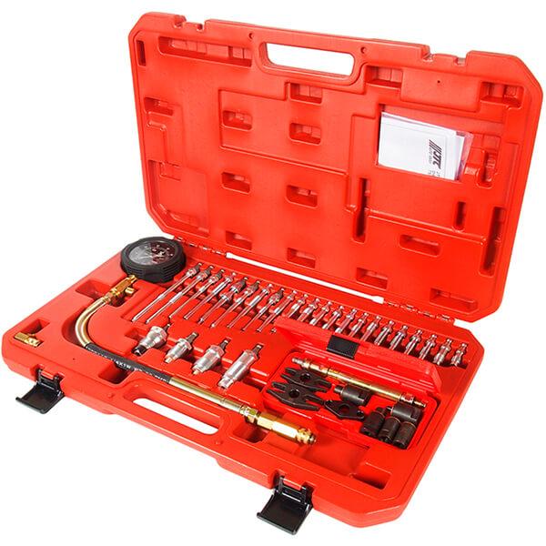 Компрессометр дизель с адаптерами 37 предметов JTC JTC-4302 применяется для диагностики герметичности камеры сгорания двигателя.