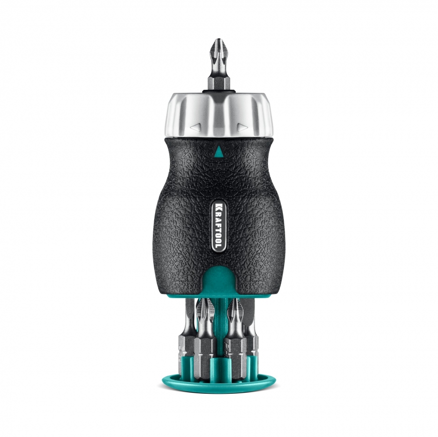 Компактная реверсивная отвертка c прочным цельнометалическим трещоточным механизмом. Небольшой размер и хранение бит внутри рукоятки дают возможность всегда иметь отвертку под рукой