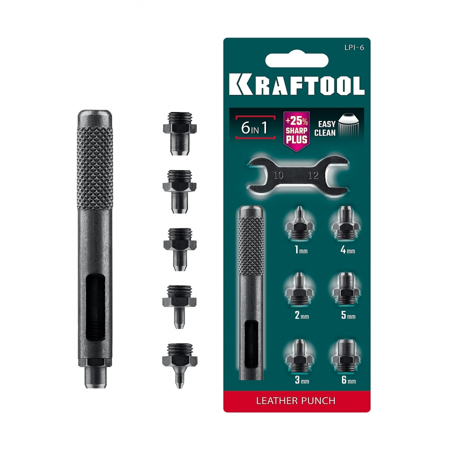 Профессиональный ударный пробойник для вырубания круглых отверстий в коже, картоне, резине и пластике. LPI-6 (Leather Punch Impact) -ударный пробойник для кожи на 6 размеров отверстий