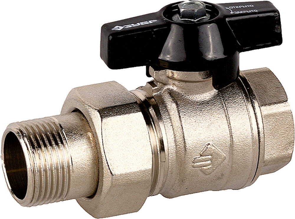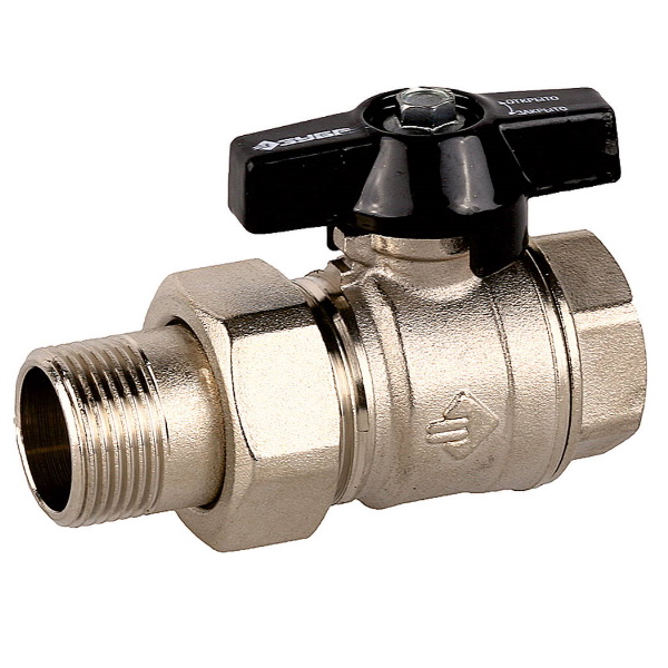 Кран шаровой с накидной гайкой мама-папа 3/4" Зубр 4-51327-C-3/4 используется с трубопроводными системами.