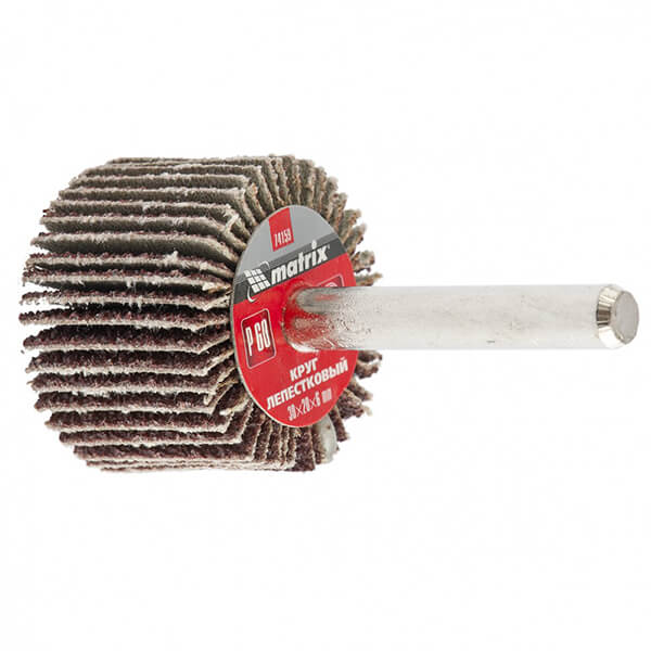 Круг лепестковый для дрели 30 х 20 х 6 мм, P150 Matrix 74163 применяется совместно с дрелями в шлифовальных работах по металлу, дереву и другим материалам. Круг лепестковый радиальный изготовлен из лепестков шлифовальной шкурки на тканевой основе, которые радиально расходятся от удерживающего их основания, служащего также хвостовиком.