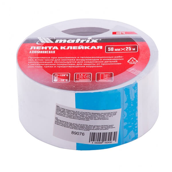 Лента клейкая алюминиевая 50 мм х 25 м Matrix 89076 используется при монтаже систем вентиляции и кондиционирования.