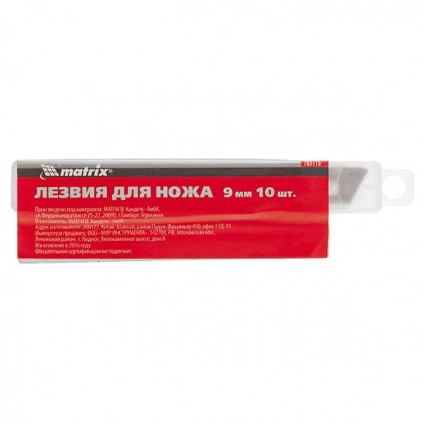 Лезвия 9 мм, 10 шт Matrix 793115 предназначены для хозяйственного и профессионального использования.