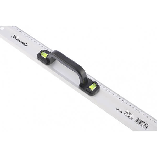 Линейка-уровень с пластмассовыми ручками 600 мм, 2 глазка Matrix Master 30573 рассчитана на работу с одной плоскости.