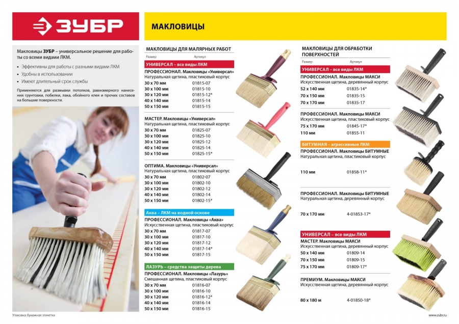 Отличное решение для нанесения лаков и красок на водной основе, грунтовки, побелки на большие поверхности, клеевых составов на обои, размывки потолков. Щетина кисти надежно закреплена бандажом из никелированной стали, а наличие удобной пластмассовой рукоятки обеспечит комфортную работу
