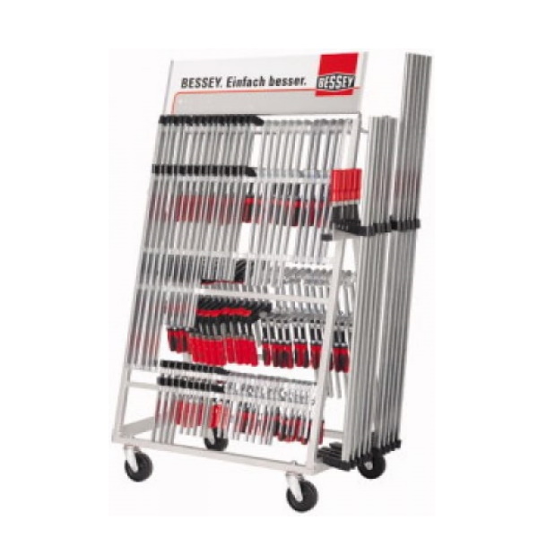 Мобильный стеллаж для струбцин с товаром BESSEY BE-ZW2-A99 является очень стабильной металлической конструкцией на роликах, используемой для профессиональной презентации продукции и эффективности продаж.