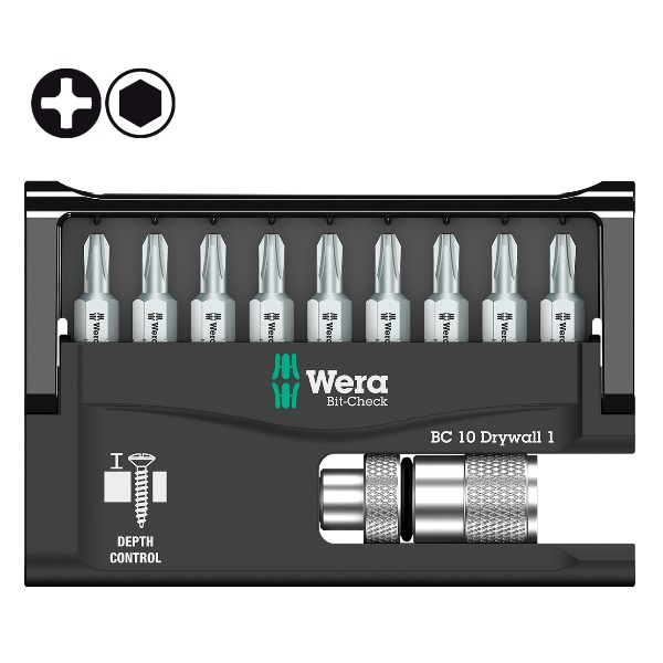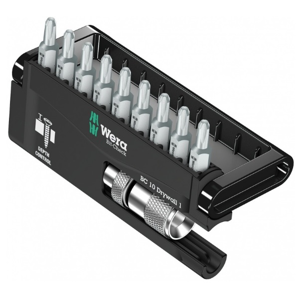 Набор бит Bit-Check 10 Drywall 1 Wera WE-136011 предназначен для работы по монтажу и демонтажу резьбовых соединений (при работах с гипсокартоном).