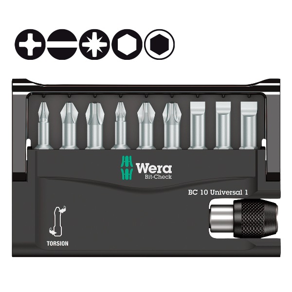 Набор бит Bit-Check 10 Universal 1 Wera WE-056161 предназначен для работы по монтажу и демонтажу резьбовых соединений.
