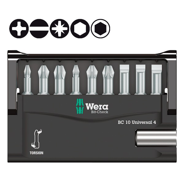 Набор бит Bit-Check 10 Universal 4 Wera WE-056159 предназначен для работы по монтажу и демонтажу резьбовых соединений.