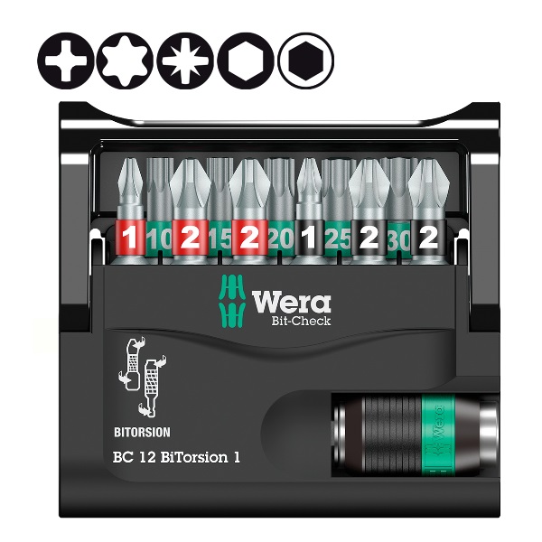 Набор бит Bit-Check 12 BiTorsion 1 Wera WE-057420 предназначен для работы по монтажу и демонтажу резьбовых соединений.