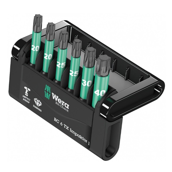 Набор бит Bit-Check 6 TX Impaktor 1 Wera WE-057693 предназначен для работы по монтажу и демонтажу резьбовых соединений. Набор состоит из 6 предметов.