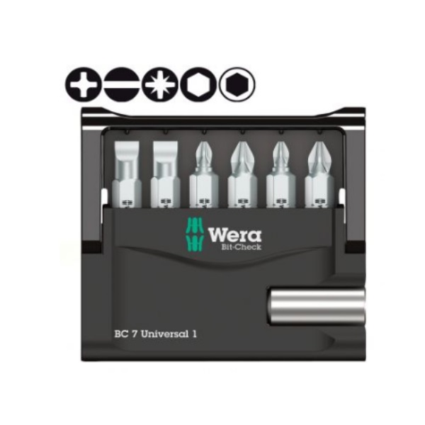 Набор бит Bit-Check 7 Universal 1 Wera WE-056295 предназначен для работы по монтажу и демонтажу резьбовых соединений.