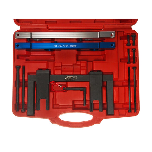 Набор фиксаторов распредвала для установки фаз ГРМ (BMW) JTC JTC-4619AB специально предназначен для удерживания распредвала в ВМТ при регулировке фаз ГРМ. Выполнены из прочной стали марки S45С, алюминий. Применяется на двигателях автомобилей BMW N51/N52/N53/N54.