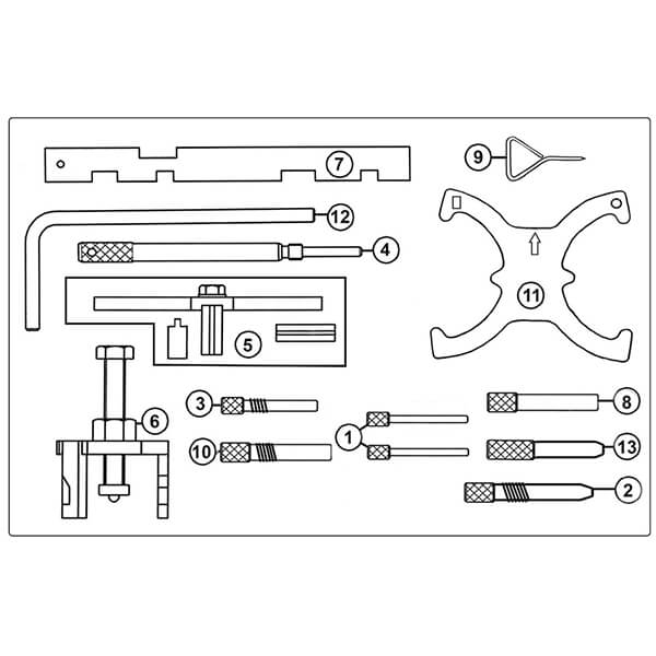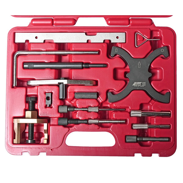 Набор фиксаторов распредвала и коленвала (FORD, MAZDA) в кейсе JTC JTC-4234 применяется на станциях технического обслуживания и в частных мастерских для наладки ГРМ, а также цилиндрической и поршневой системы двигателя (КШМ) как в легковых, так и в грузовых автомобилях.