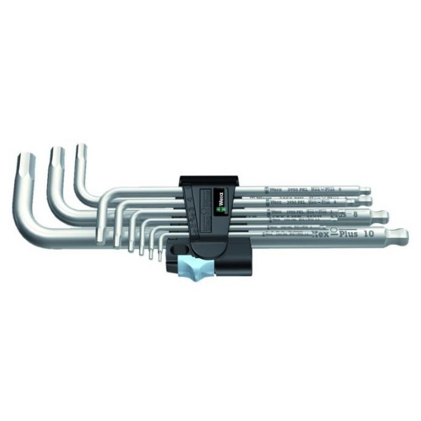 Набор Г-образных ключей 3950 PKL/9 Wera WE-022720 - комплект из 9 (девяти) г-образных метрических ключей с профилем Hex-Plus, выполненных из нержавеющей стали, которые предназначены для закручивания/откручивания крепежей с шестигранным профилем. У данных ключей очень простая конструкция, они удобны в работе.
