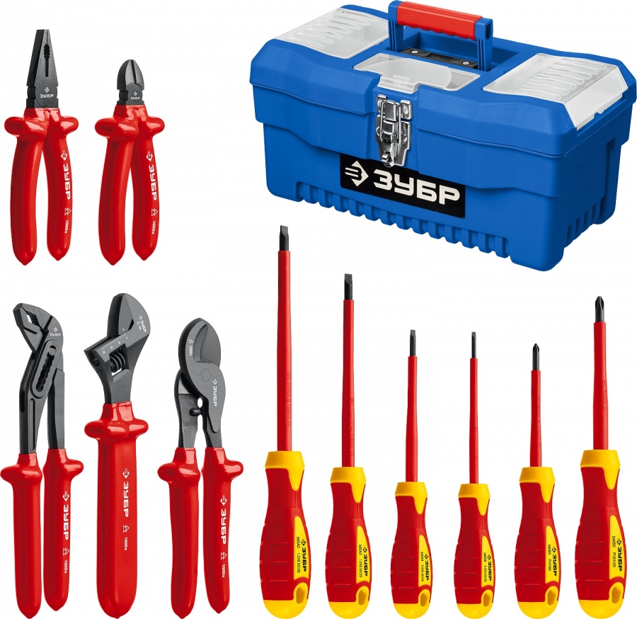 Профессиональный набор инструментов включает в себя расширенный комплект инструментов предназначеных для работ под напряжением до 1000 В и захвата и удерживания мелких предметов, перекусывания проволоки средней твердости и других слесарных и монтажных работах.