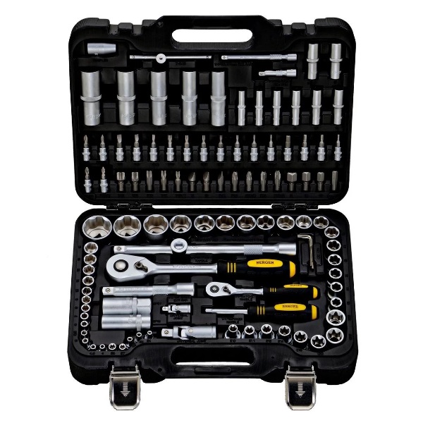 Набор инструментов 108 предметов Berger BG108-1214 состоит из 108 предметов в прочном кейсе, где каждый инструмент занимает фиксированное место и легко извлекается.