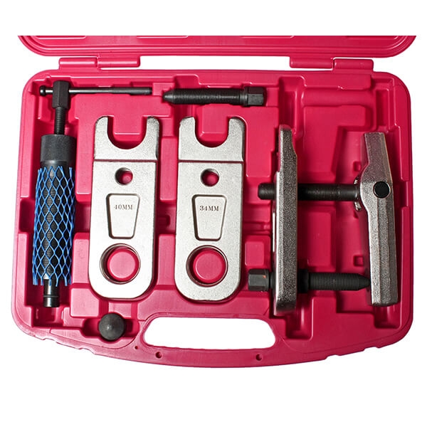 Универсальный гидравлический набор инструментов 6 шт JTC JTC-4075 предназначен для работы вручную либо с помощью гидравлического привода (для грузовых автомобилей до 12 т.). В комплект входит специальный адаптер для присоединения упорного винта или гидравлического привода. Применяется для снятия наконечников поперечной рулевой тяги, стабилизатора, поперечной устойчивости и шаровых опор. Рабочий диапазон: 30, 34, 40 мм. Длина упорного винта: 100, 80 мм. Длина поворотного рычага: 125 мм. Упакован в прочный переносной кейс. Габариты: 400 х 305 х 90 мм. Вес: 7,9 кг.