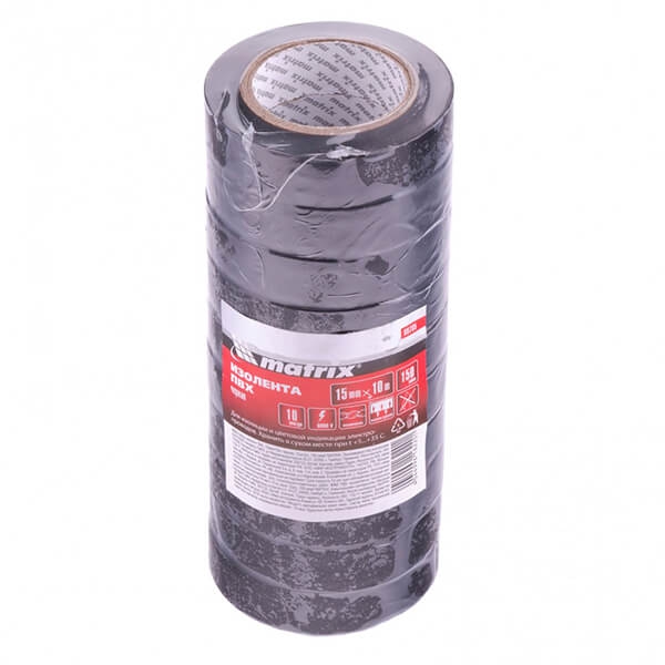 Набор изолент ПВХ 15 мм х 10 м, черная, 10 шт Matrix 88785 предназначен для проведения всех видов электромонтажных работ (электрическая изоляция проводников, защита от механических повреждений, цветовая маркировка).